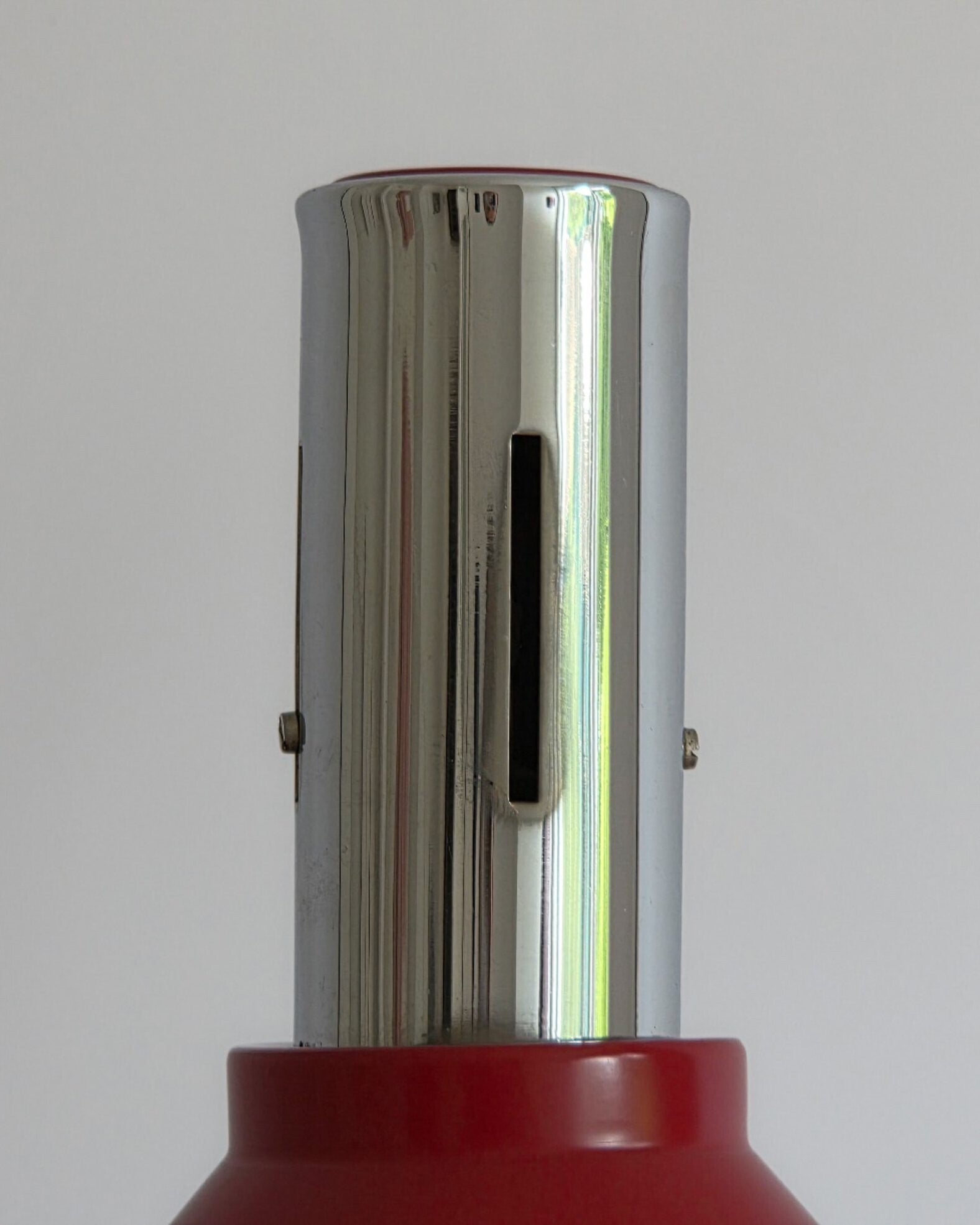Deze vintage bureaulamp is in de jaren 60 geproduceerd in Italië door Stilux Milano. De lamp is gemaakt van (verchroomd) metaal en kan op veel verschillende manieren gericht worden. De lamp heeft een schuifsysteem in de kap en twee kogelgewrichten waarmee de lamp in elke gewenste positie gedraaid kan worden. Een multifunctionele bureaulamp in een prachtige wijnrode kleur! Lichtknopje op de voet.