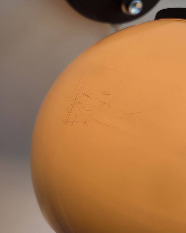 De lamp heeft enkele oppervlakkige krasjes/vlekken op de kap en op het armatuur conform leeftijd.