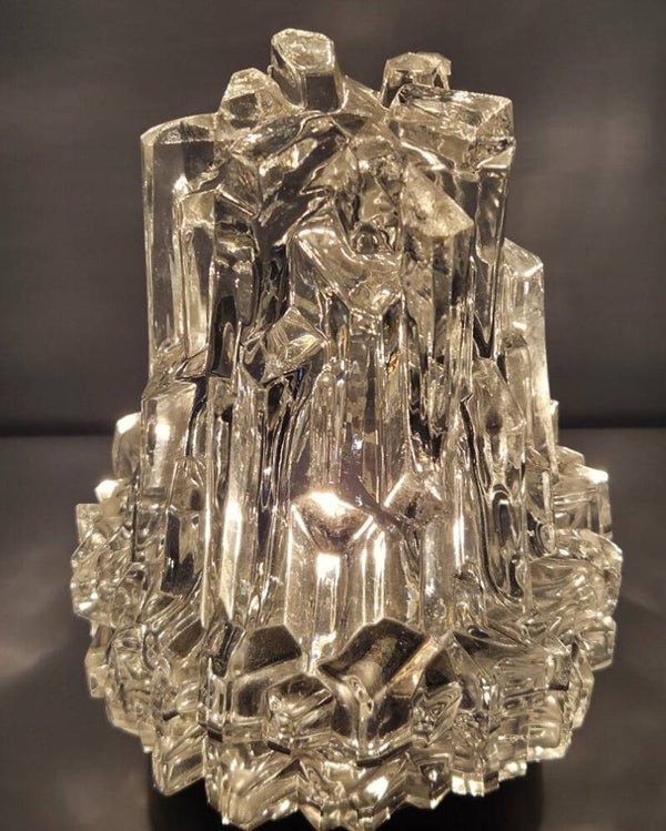 Deze Mid Century plafondlamp heeft een lampenkap van dik transparant glas. Door de vorm van het glas ontstaat er een diamantachtig effect. Prachtige vintage plafondlamp van zware kwaliteit. De plafondkap is van zwart kunststof inclusief fitting.