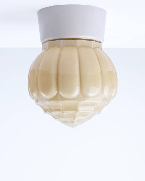 Deze beige Art Deco lampen is in goede conditie. Glas is gaaf.